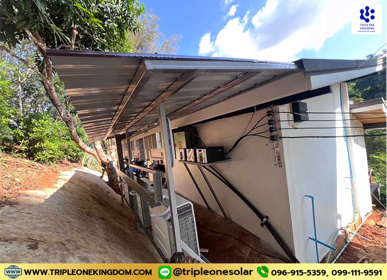 ผลงานการติดตั้งโซล่าเซลล์สำหรับ สำนักงาน หรือ บ้านพักอาศัย Solar roof / Solar rooftop โดยทีมงาน Triple One Kingdoms Co., Ltd. เรามีความชำนาญและประสบการณ์ด้านระบบไฟฟ้ามานานกว่า 25ปี การติดตั้งโซล่าเซลล์สำหรับบ้านพักอาศัยเป็นวิธีที่ได้รับความนิยมในการลดค่าไฟฟ้าและใช้พลังงานสะอาด การติดตั้งระบบโซล่าเซลล์นั้นมีทั้งแบบออนกริด (Solar On Grid) ซึ่งเชื่อมต่อกับการไฟฟ้า และแบบออฟกริด (Solar Off Grid) ที่ใช้แบตเตอรี่สำหรับเก็บไฟฟ้า และระบบ Solar Hybrid คือระบบที่พัฒนาขึ้นมาใหม่โดยรวมขอดีของทั้ง Solar On Grid กับ Off Grid กล่าวคือ ระบบมีการเชื่อมต่อกับการไฟฟ้าสำหรับช่วงที่ไม่มีแดดและมีการใช้แบตเตอรี่เพื่อเก็บพลังงานส่วนที่ผลิตเหลือในตอนกลางวันไปใช้งานในตอนกลางคืนด้วย (คล้ายๆ รถยนต์ Hybrid ที่มีการใช้พลังงานจากเครื่องยนต์และชาร์ตแบตเตอรี่ไปในขณะที่เบรค) การเลือกขนาดระบบที่เหมาะสมขึ้นอยู่กับปริมาณการใช้ไฟฟ้าของแต่ละบ้านและประเมินโดยวิศวกร โดยปกติความคุ้มค่าในการติดติดตั้งโซล่าเซลล์ ควรจะเริ่มต้นที่ 3kW ขึ้นไป