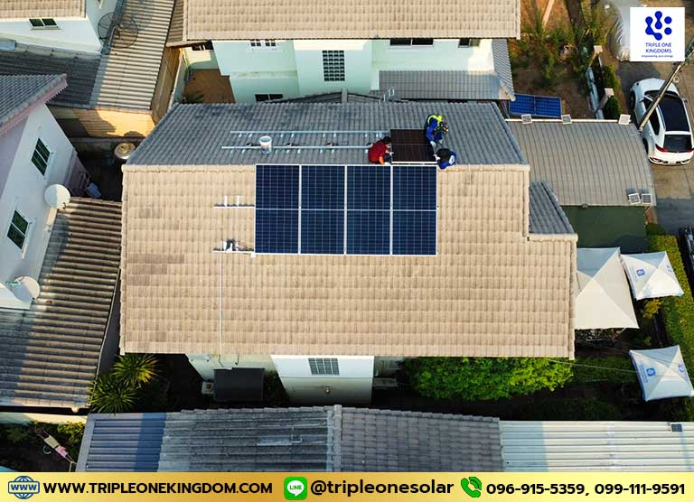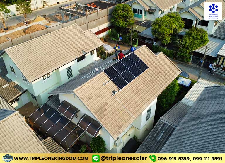 ผลงานการติดตั้งโซล่าเซลล์ สำหรับสำนักงานหรือบ้านพักอาศัย (Solar Roof / Solar Rooftop) โดยทีมงาน Triple One Kingdoms Co., Ltd. เรามีความชำนาญและประสบการณ์ด้านระบบไฟฟ้ามานานกว่า 25ปี การติดตั้งโซล่าเซลล์สำหรับบ้านพักอาศัยเป็นวิธีที่ได้รับความนิยมในการลดค่าไฟฟ้าและใช้พลังงานสะอาด การติดตั้งระบบโซล่าเซลล์นั้นมีทั้งแบบออนกริด (Solar On Grid) ซึ่งเชื่อมต่อกับการไฟฟ้า และแบบออฟกริด (Solar Off Grid) ที่ใช้แบตเตอรี่สำหรับเก็บไฟฟ้า และระบบ Solar Hybrid คือระบบที่พัฒนาขึ้นมาใหม่โดยรวมขอดีของทั้ง Solar On Grid กับ Off Grid กล่าวคือ ระบบมีการเชื่อมต่อกับการไฟฟ้าสำหรับช่วงที่ไม่มีแดดและมีการใช้แบตเตอรี่เพื่อเก็บพลังงานส่วนที่ผลิตเหลือในตอนกลางวันไปใช้งานในตอนกลางคืนด้วย (คล้ายๆ รถยนต์ Hybrid ที่มีการใช้พลังงานจากเครื่องยนต์และชาร์ตแบตเตอรี่ไปในขณะที่เบรค) การเลือกขนาดระบบที่เหมาะสมขึ้นอยู่กับปริมาณการใช้ไฟฟ้าของแต่ละบ้านและประเมินโดยวิศวกร โดยปกติความคุ้มค่าในการติดติดตั้งโซล่าเซลล์ ควรจะเริ่มต้นที่ 3kW ขึ้นไป
